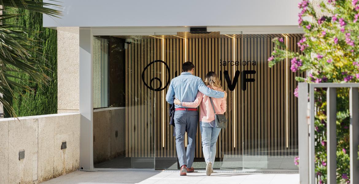 Una coppia arriva insieme alla clinica Barcelona IVF per iniziare il loro percorso di fertilità.